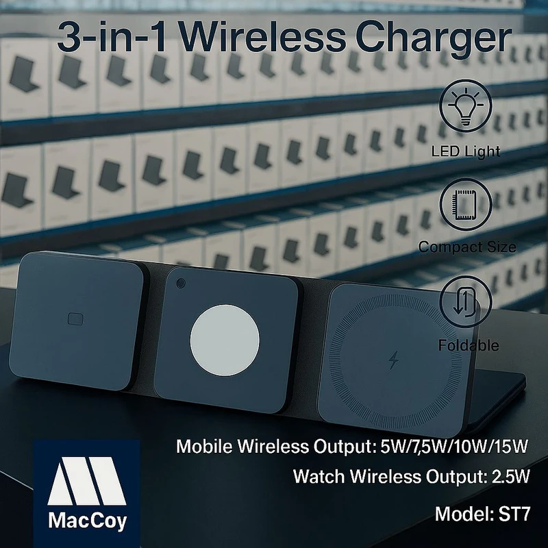 ایستگاه شارژر وایرلس 3 در 1 مدل ST7 تاشو با خروجی سریع