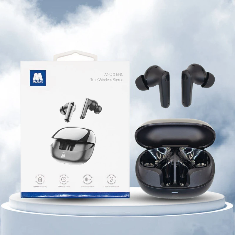 هندزفری بی‌سیم MacCoy با طراحی مدرن و ارگونومیک، انتخابی عالی برای کسانی‌ست که به کیفیت صدا، راحتی و دوام اهمیت می‌دهند. این مدل با فناوری‌های پیشرفته ANC (حذف نویز فعال) و ENC (کاهش نویز محیطی)، صدایی شفاف و بدون مزاحمت را در هر شرایطی فراهم می‌کند. کیس شارژ قدرتمند با ظرفیت 500mAh امکان پخش موسیقی تا 30 ساعت را فراهم می‌کند، و طراحی سبک و جمع‌وجور آن، حمل‌ونقل را آسان‌تر از همیشه کرده است.