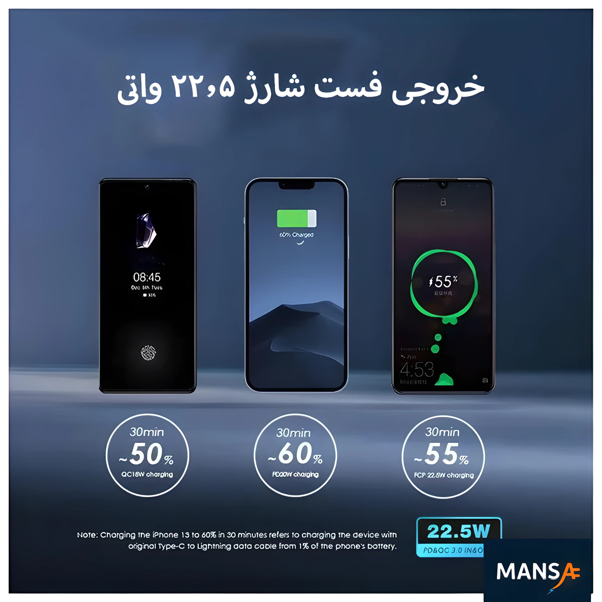 با سرعتی چشمگیر، دستگاه خود را تا 60٪ تنها در 30 دقیقه شارژ کنید!