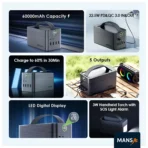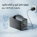 این پاوربانک دارای ۵ پورت خروجی و ۲ پورت ورودی است و بهطور همزمان چندین دستگاه را شارژ میکند — مناسب برای خانواده، سفر یا استفاده در محل کار.