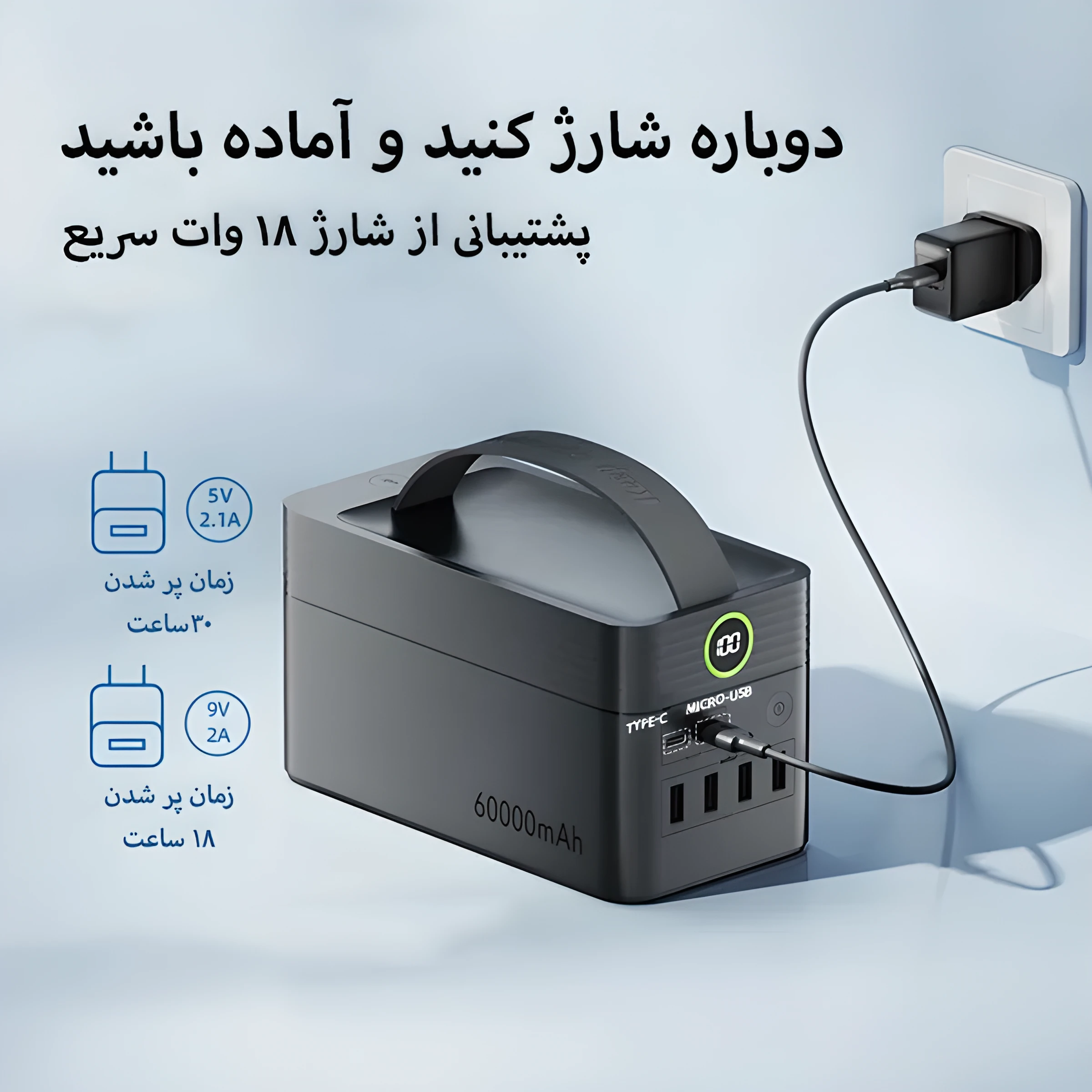 ⚡ شارژ سریع ورودی 18 وات