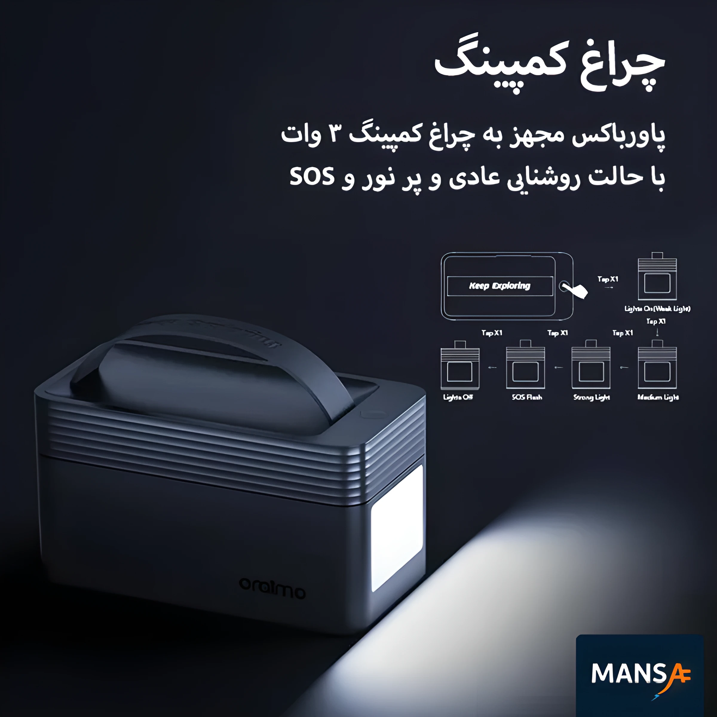 با دکمهی مخصوص، سطح روشنایی را تغییر دهید یا حالت هشدار SOS را فعال کنید — مناسب برای کمپ، سفر و مواقع اضطراری.