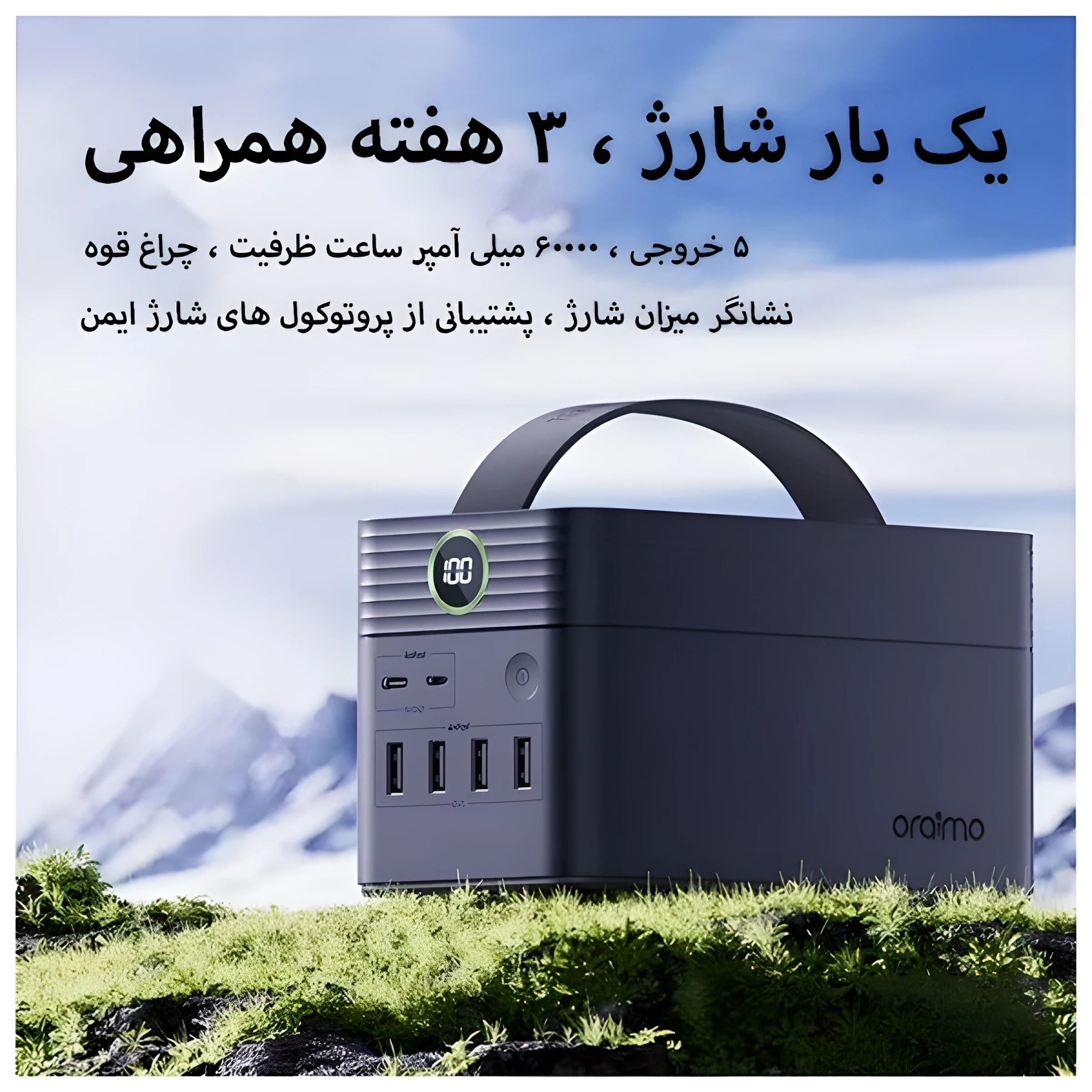 اگر همیشه در سفر، محل کار یا طبیعت به شارژ نیاز دارید، Oraimo Powerbox 600 همان منبع انرژی قابلاعتماد شماست! این پاوربانک قدرتمند با ظرفیت فوقالعادهی 60000mAh (222Wh)، طراحی کاربردی و فناوری شارژ سریع، تجربهای کاملاً متفاوت از شارژ همراه را ارائه میدهد.