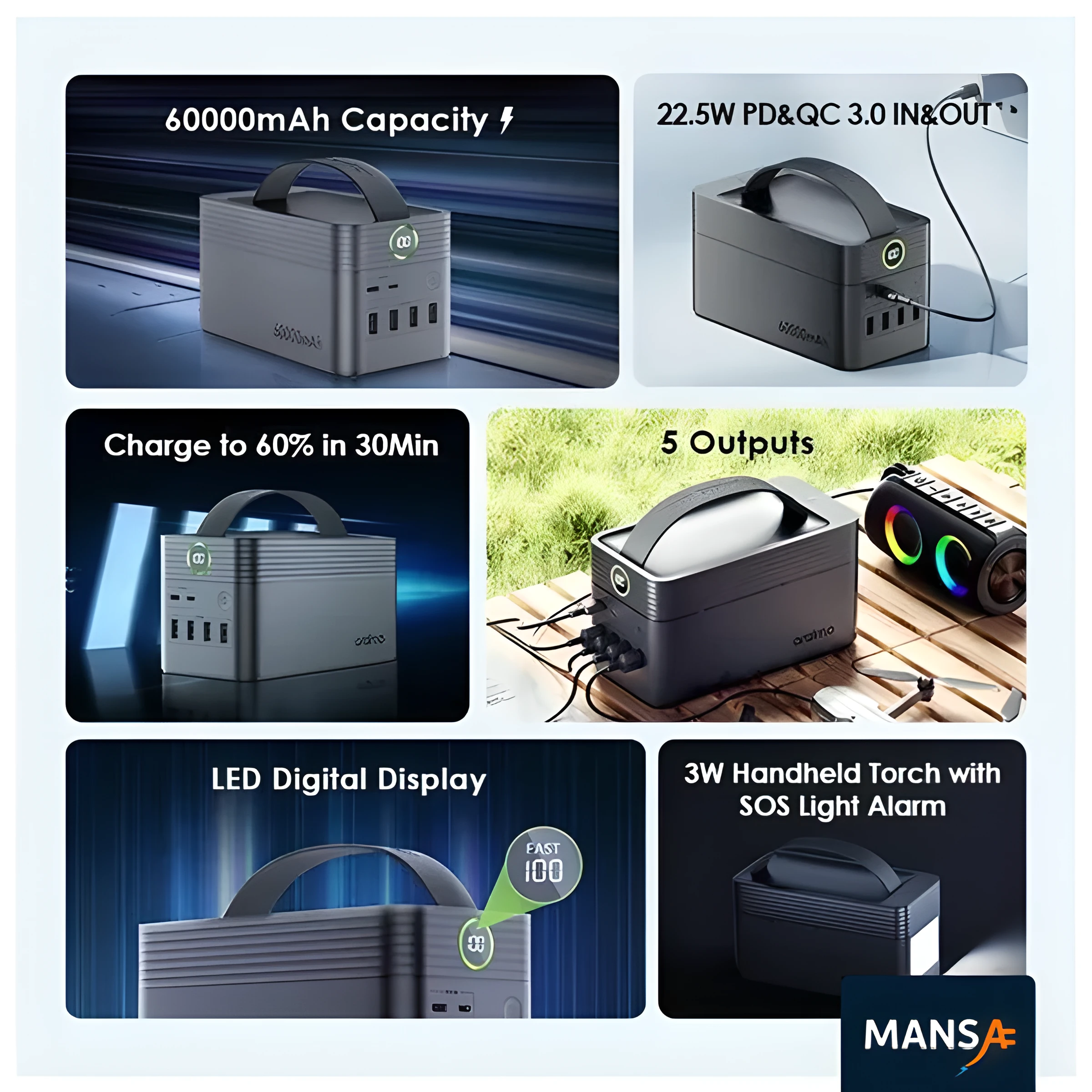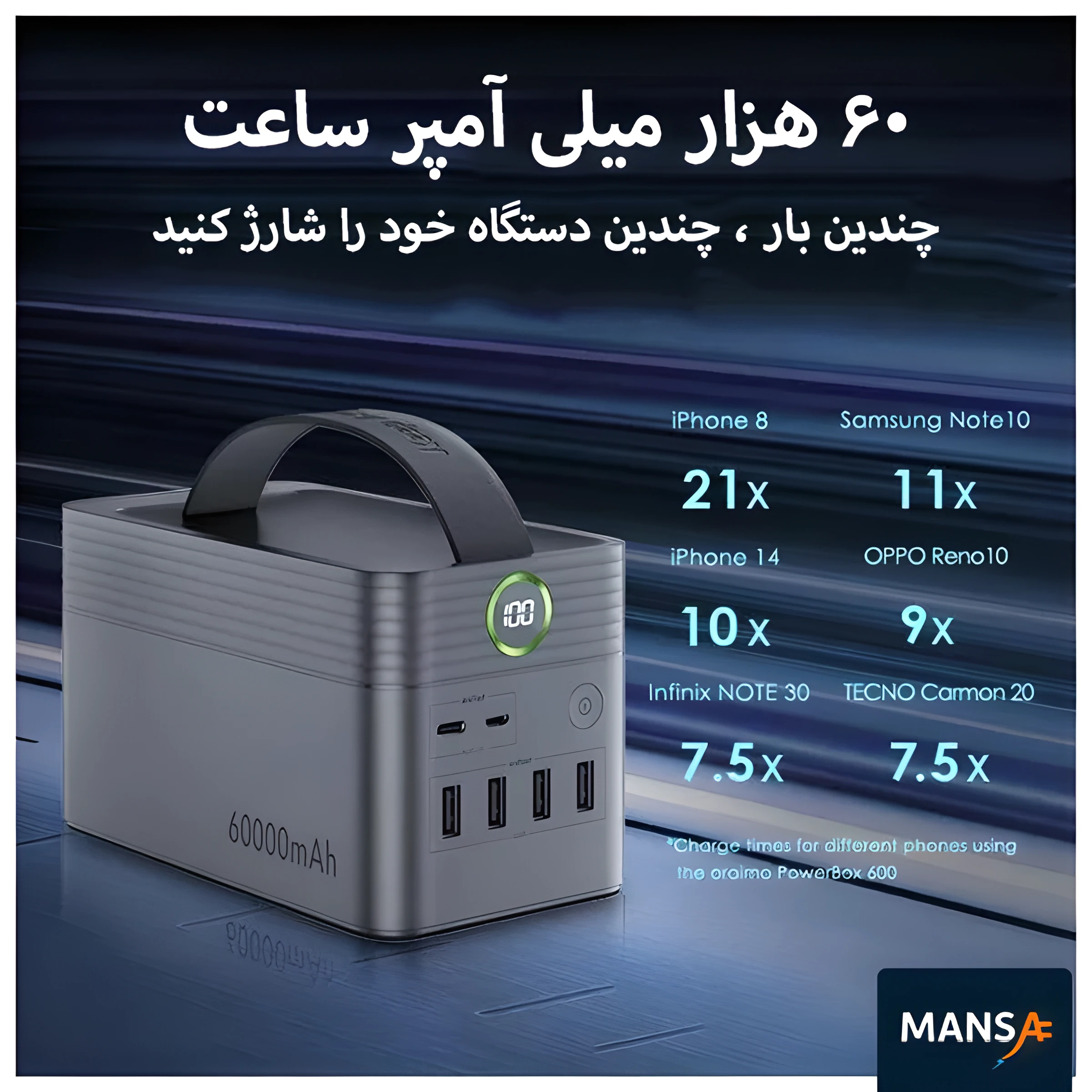 💪 ظرفیت فوقالعاده بالا – 60000mAh